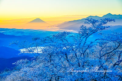 | 凍えるような寒さで木々は白く霧氷の花を咲かせ |