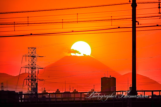 | 京王線 多摩川橋梁からのダイヤモンド富士です |