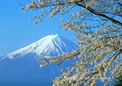 A cherry tree and the photograph of Mt. Fuji